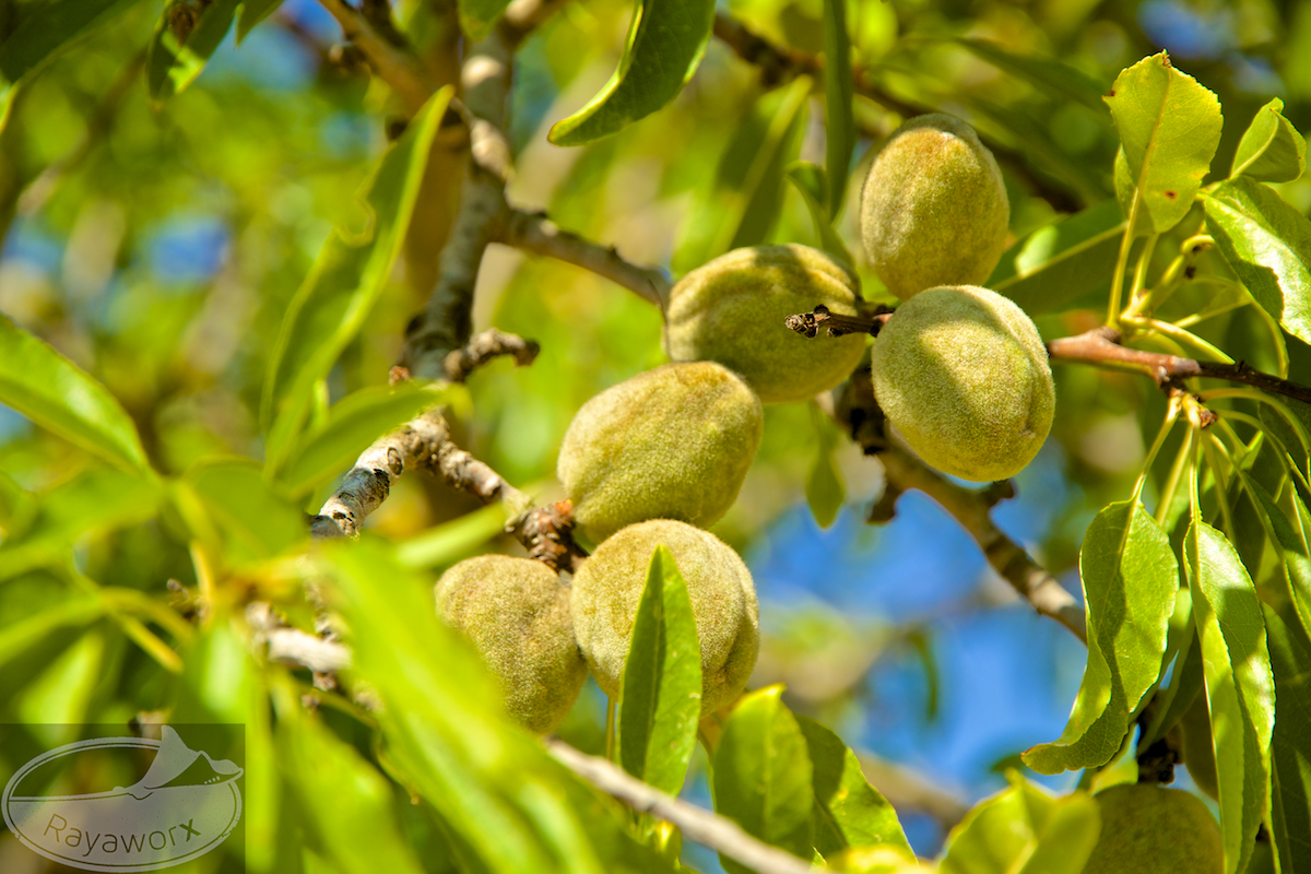 Unauffällig grün präsentieren sich die Mandelazubis im Baum – aus den weissen Blüten wurden pelzige Mandeln. Keine Sorge, das ist nur die Umverpackung für den Sommer.