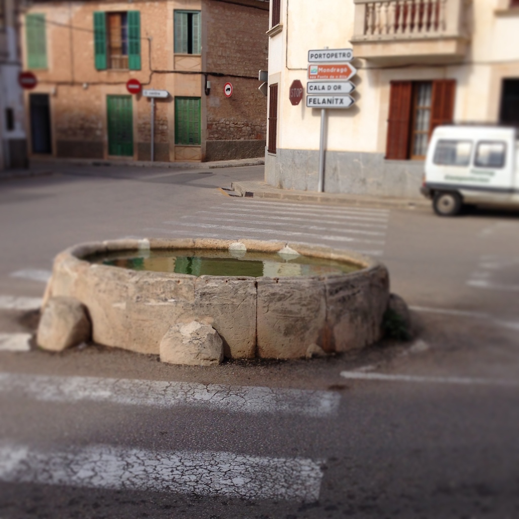 Über airBnB buchten wir ein Stadthaus in Santanyí. Gleich um die Ecke unserer Unterkunft erfreute uns dieser Brunnen – mitten auf der Kreuzung der Strassen Carrer Cal Reiet und Carrer Bernat Vidal i Tomàs.