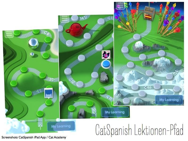 Spanisch lernen mit Rosetta Stone ist schon prima. Bei der von uns gewählten Offline-Version des Kurses ist jedoch keine mobile App-Nutzung dabei. Also habe ich mir eine Alternative fürs Tablet gesucht: Bei der CatAcademy wurde ich fündig.