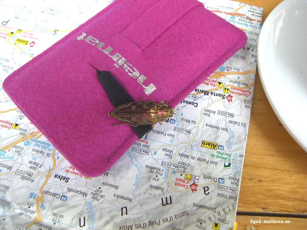 Sehr lustig war die grosse Singzikade, die uns bei einer Motorradtour-Pause durchs Gebirge Mallorcas aus dem Baum auf den Tisch rieselte. Genau aufs Handy! Vielleicht wollte sie ja einen neuen Zirp-Ton ausprobieren? Normalerweise sehen wir die im Sommer ausdauernd vor sich hin musizierenden Insekten ja nicht, und ganz ehrlich: Viele Zikaden sind auch wenig dekorativ.