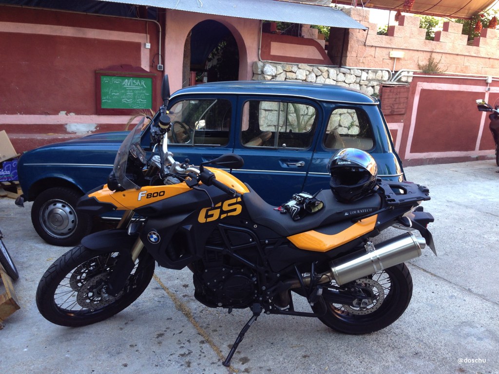 Das Café war leider geschlossen, also traf sich die Gruppe auf der Terrasse des Hostal Corona in Palma de Mallorca – wie schön, denn das ist echt ein kleines Juwel. Die Atmosphäre sehr relaxed. Das Jugendstilhaus fiel mir schon bei der Anfahrt vom Castell auf. Und auf dem Parkplatz traf ich den am besten erhaltenen R4 der Insel an, dem ich bisher begegnete.