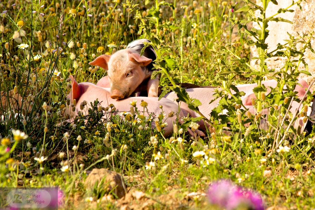 Ob hier wirklich der Weckdienst im Spiel ist oder einfach nur Ferkelchen Nummer 1 im Überschwang über die Geschwister räubert, läßt sich nicht mehr sagen. Auf alle Fälle ist immer was los hier.